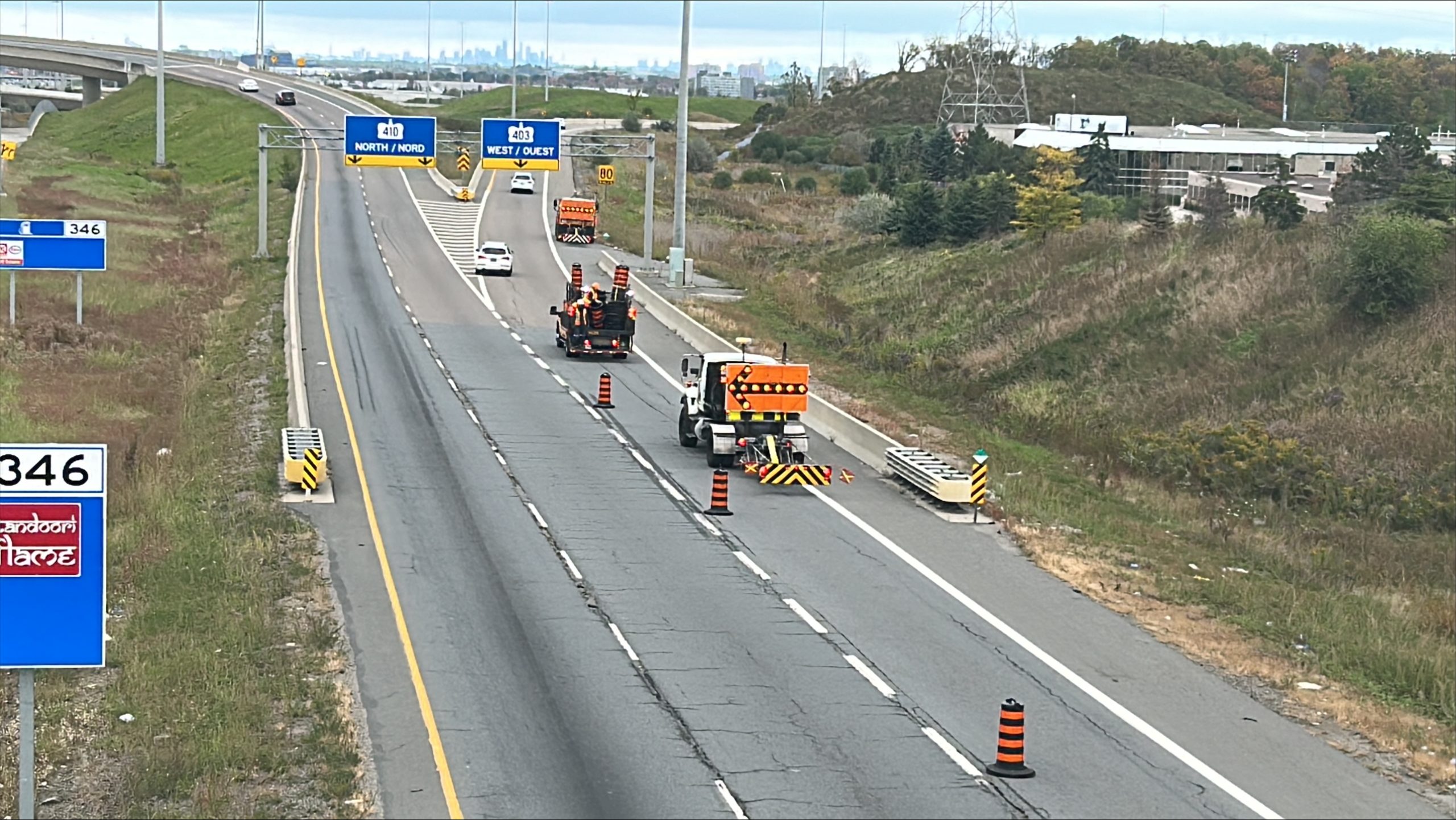 Multiple ramps from Highway 410 to Highway 403 were closed for more than several hours and reopened around 10:30 a.m.