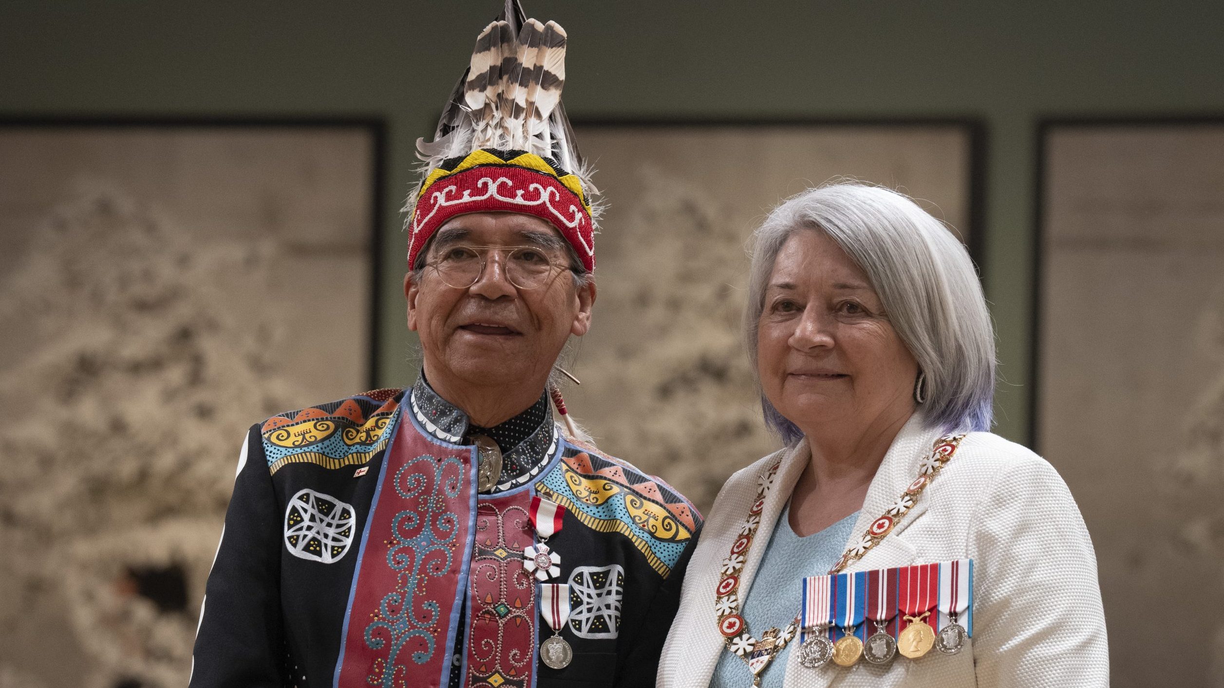 Adorned with a medal presented to him for the Order of Canada, along with the King Charles III Coronation Medal and the Queen Elizabeth Platinum Jubilee Medal, Chief Stephen Augustine’s jacket also features a rich representation of his family’s story.