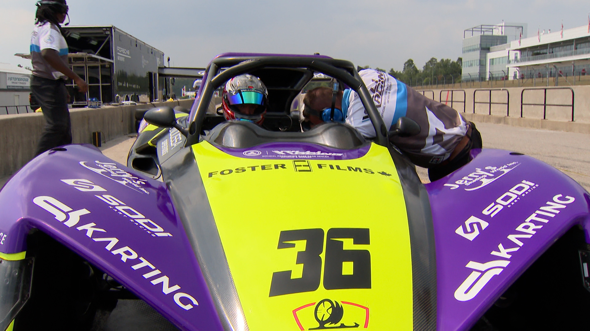 Back on the track, the Revolution car growled to life. You could hear it but barely see it as he sped around the track; you could only see a speck of purple. Stojko slipped into the cockpit again, closing the visor like a curtain dropping before another performance.
