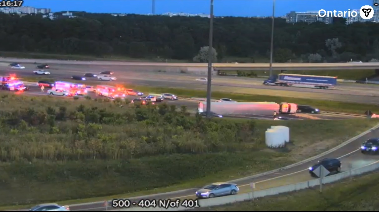 Hwy. 401 collector lanes closed near Hwy. 404 due to tractor trailer rollover