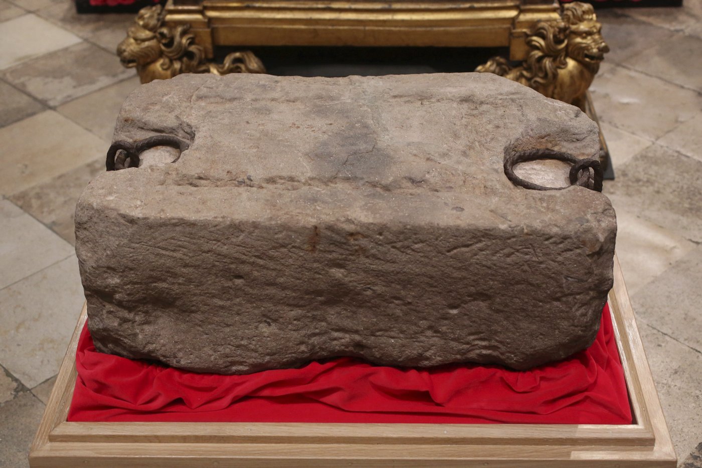 The 335-pound (150-kilogram) sandstone block is also known as the Stone of Scone (Skoon) — and was used in the crowning ceremonies of medieval Scottish monarchs at Scone Abbey, near Perth. It was stolen by England’s King Edward I in the 13th century and taken to Westminster Abbey in London, where it was installed under the seat of the coronation chair.