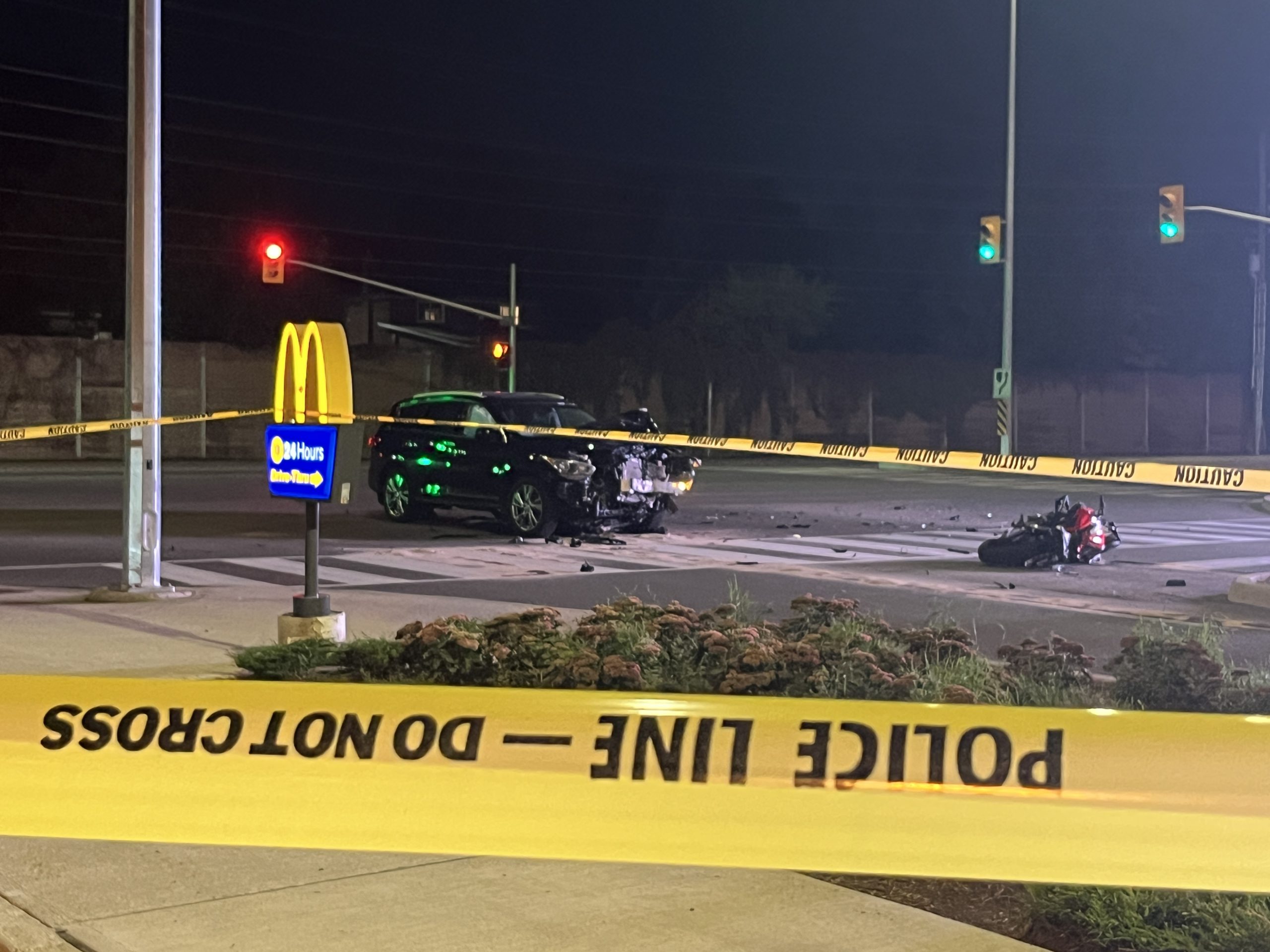 Officers say the motorcyclist hit the Sheridan Mall entrance near the Sheridan Park Drive and Erin Mills Parkway area.