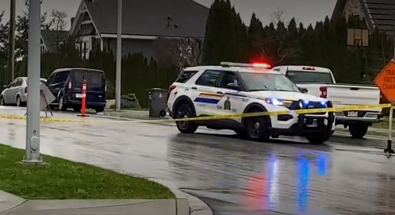 An RCMP vehicle was posted outside a home at 187th Street and 54th Avenue Sunday morning.