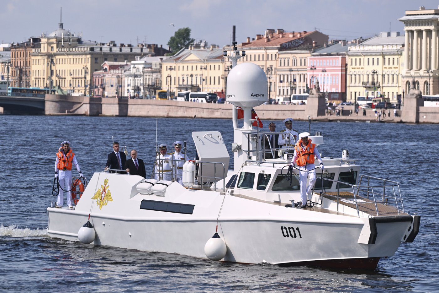 He also visited the Admiral Grigorovich frigate of the Baltic Fleet at the Kronstadt naval base just west of St. Petersburg to hail its crew for fending off a Ukrainian drone attack in the region earlier in the day.