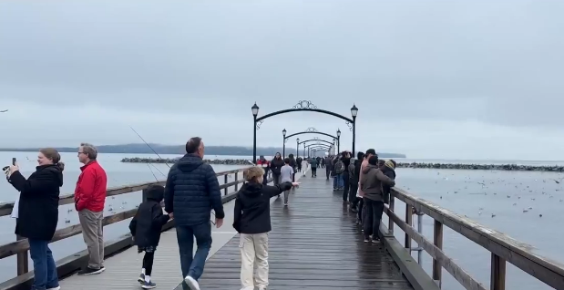 Elliser figures the animals are here because there’s a strong food source — which the masses of anchovies under the pier would support — but it isn’t entirely clear why this is happening.