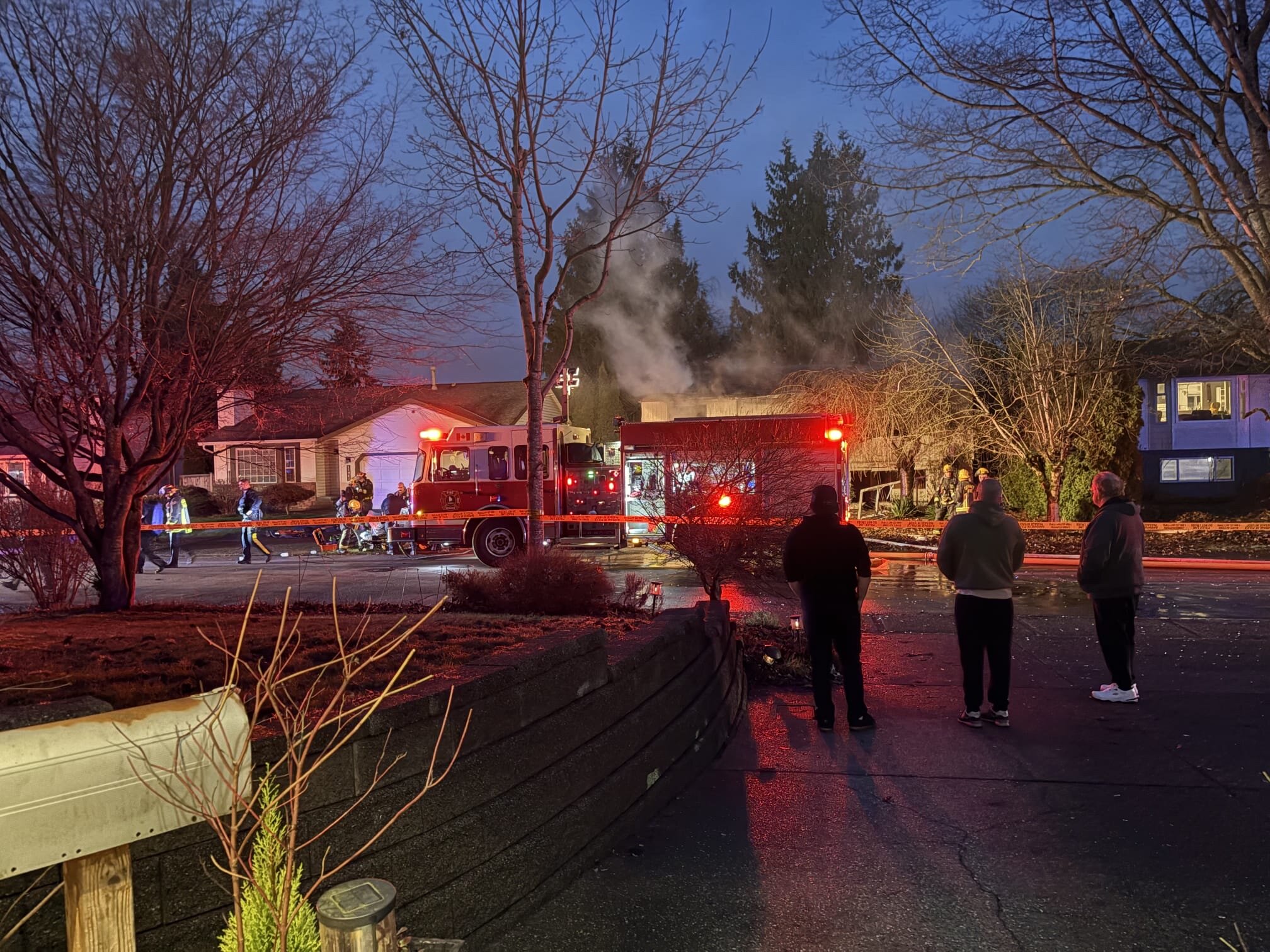 A two-storey house was fully engulfed in flames when emergency crews reached the scene on Jersey Drive in Cloverdale around 4:30 p.m. But they weren’t the first to arrive.