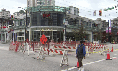 A sinkhole at a downtown Vancouver intersection, causing lane closures and traffic delays, will be repaired by the end of this week, the city says. ⚠️...