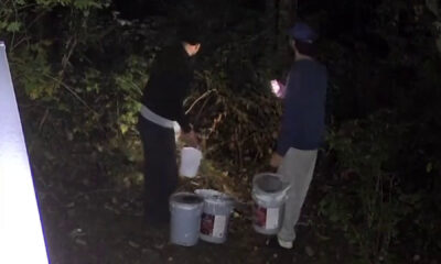 Two men have been fined after they were caught on video throwing buckets of paint into Noons Creek earlier this week, the City of Coquitlam says....