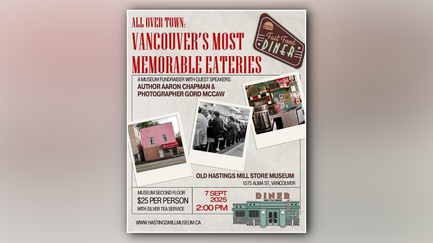 All Over Town: Vancouver’s Most Memorable Eateries happens this Sunday at 2 p.m. at the Hastings Mill Museum on Alma Street. Entry is $25, and proceeds go to the museum.