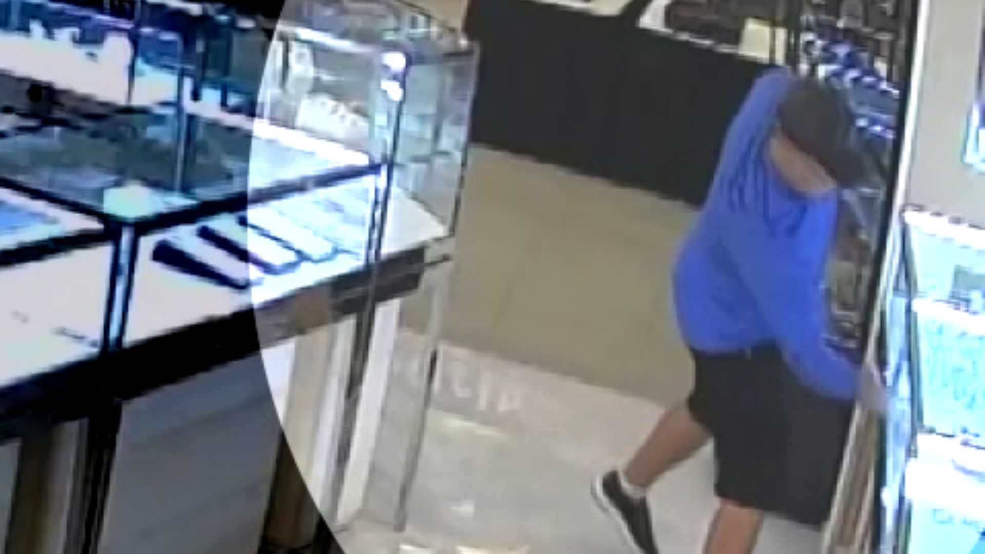 Just eight minutes later, the same man came back in through the side entrance and began smashing a display with a tool in his hand – and running away with what the owners say was $100,000 in merchandise.